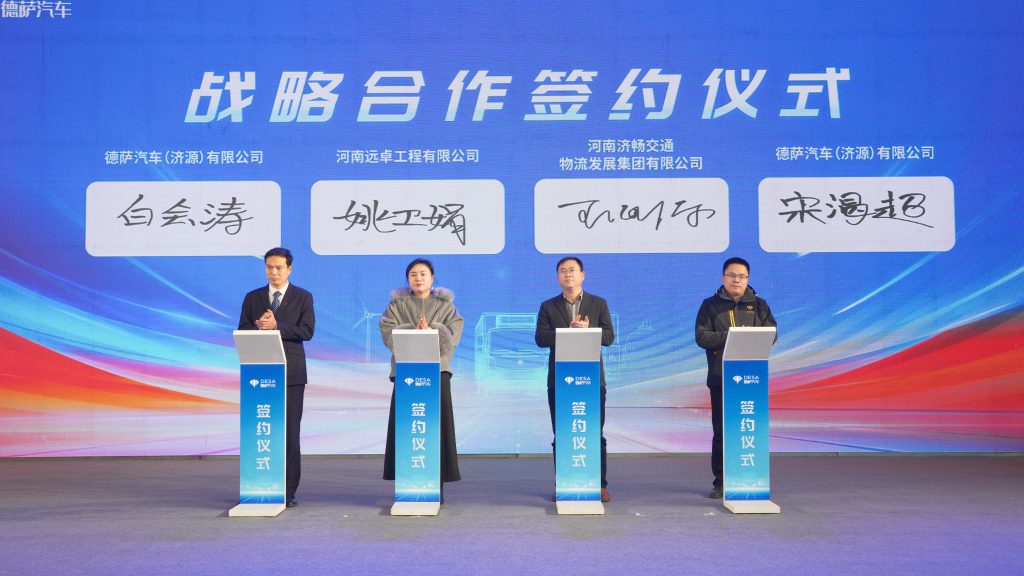 Jiyuan City continues to optimize the hydrogen energy industry ecology and actively promotes the large-scale application of hydrogen energy in transportation, energy storage and other fields. At the delivery ceremony, Desa Automobile also signed a strategic cooperation agreement with Henan Yuanzhuo Engineering Co., Ltd. and Henan Jichang Transportation Logistics Development Co., Ltd. to jointly build a "production, storage, transportation, addition, and use" hydrogen energy full scenario collaboration system, paving the way for efficient operation of subsequent vehicles and helping Jiyuan create a hydrogen energy demonstration city business card.